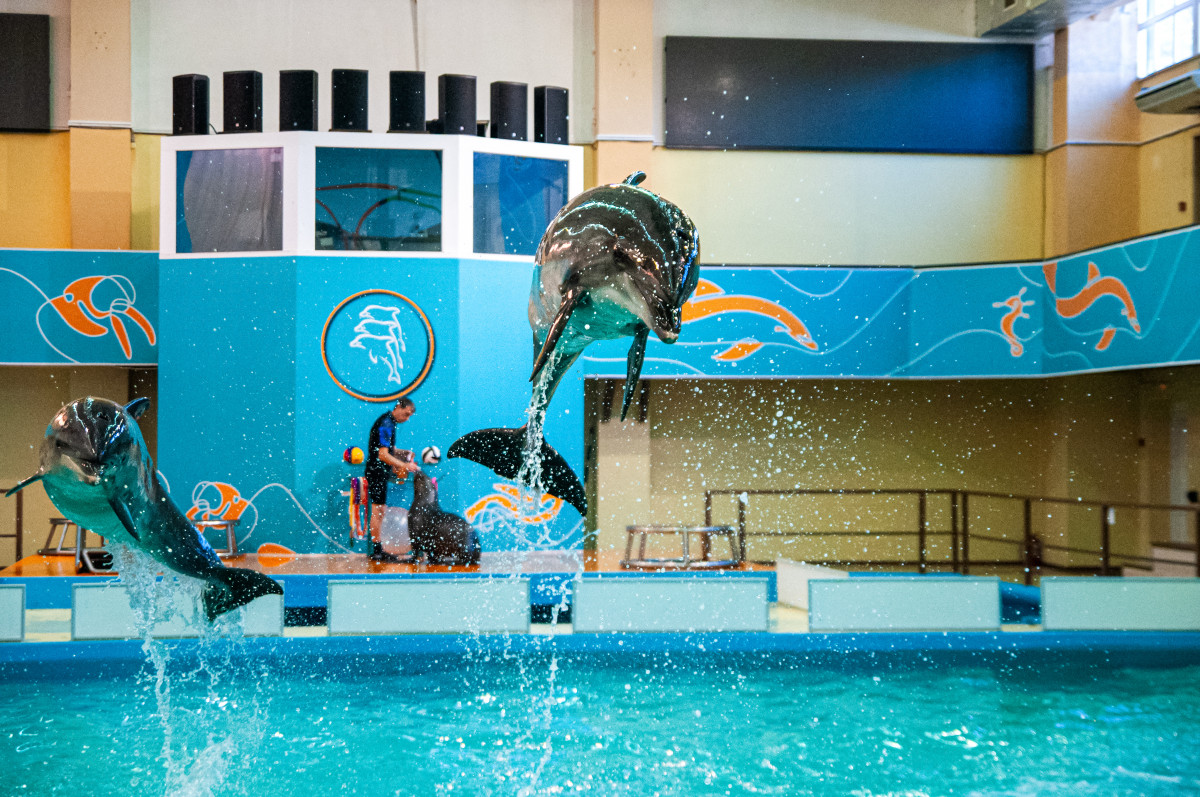 Шоу с участием черноморских дельфинов-афалин, морских котиков, южноамериканских морских львов и тихоокеанского моржа не оставит никого равнодушными.