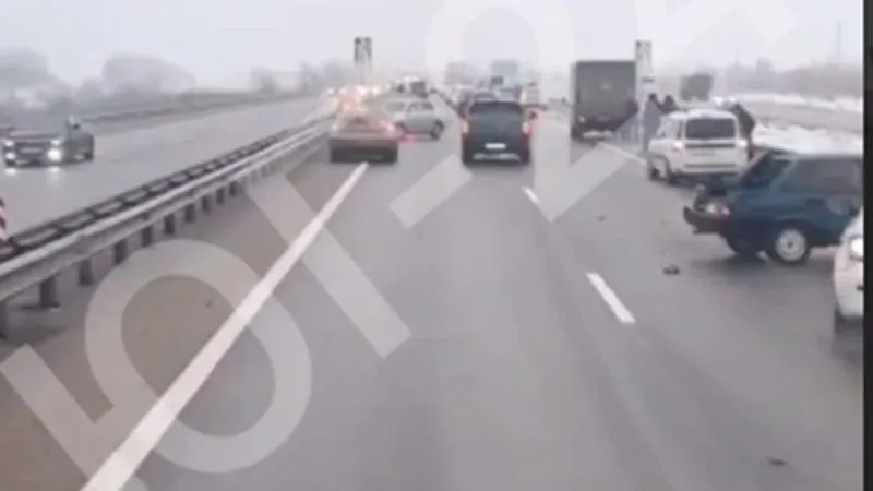 Массовая авария на трассе М4 в Краснодарском крае из-за гололедицы