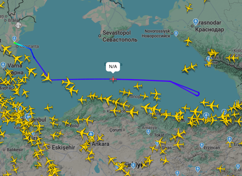 Самолёт Bombardier ARTEMIS II вылетел с территории Румынии, следуя вдоль турецкого побережья к району недалеко от Сочи, после чего развернулся и вернулся обратно. Авиатрекер зафиксировал его маршрут, который, как правило, остаётся неизменным, и ранее «Артемиду» уже замечали в этом регионе 23 апреля.