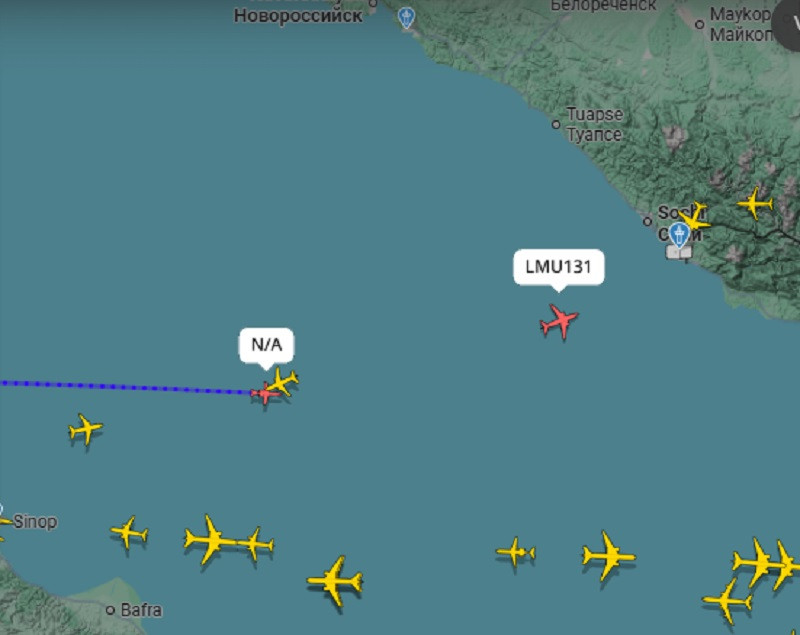 По данным карты, «Артемида» вылетела с территории Румынии и направилась по стандартному маршруту над морем в сторону Краснодарского края и Абхазии. Обычно самолёт достигает района недалеко от Сочи, затем разворачивается и возвращается обратно.